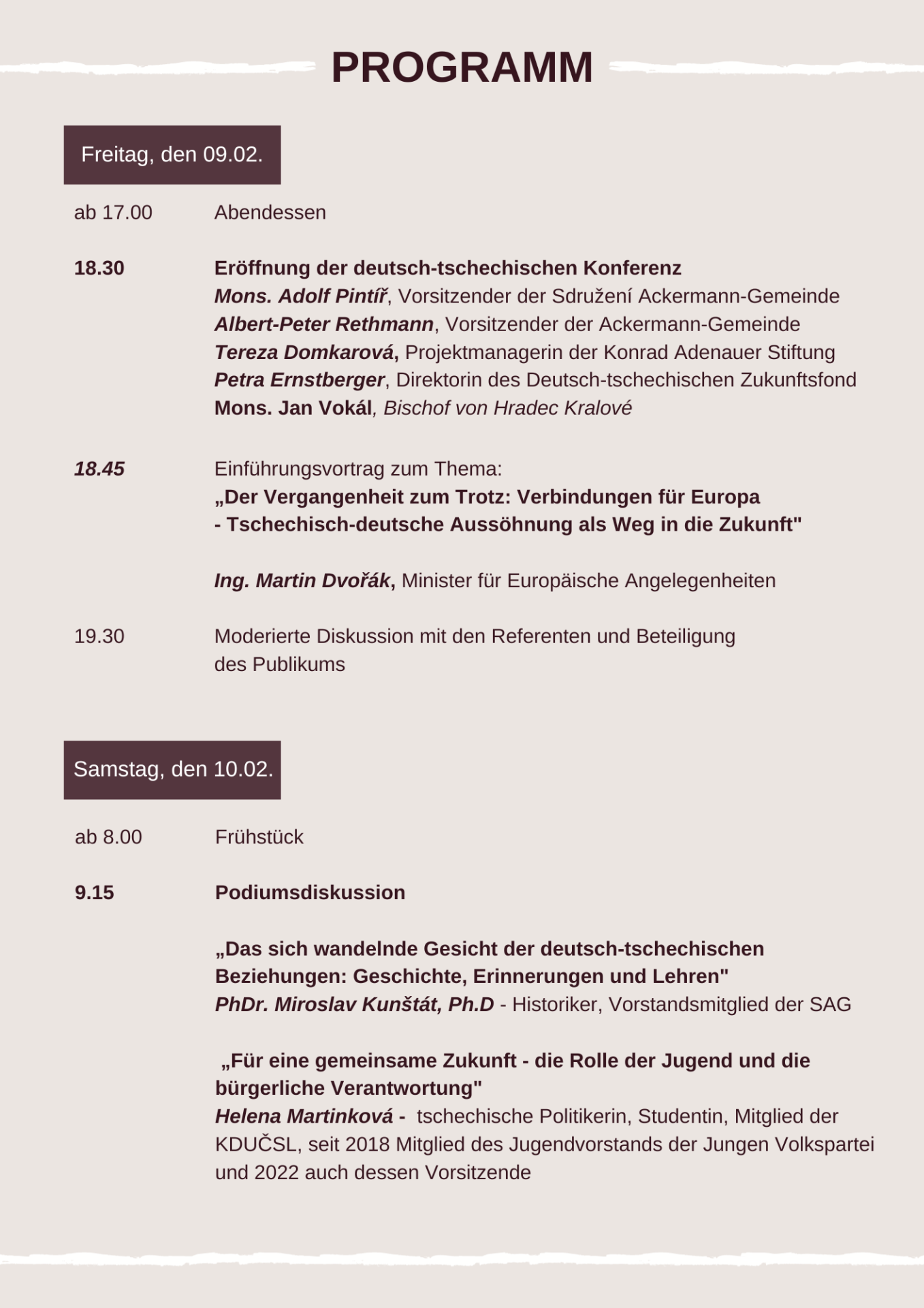 In weniger als einem Monat findet unsere deutsch - tschechische Konferenz 2024 statt. Dieses Jahr ist das Thema "Von der Versöhnung hin zum Aufabu einer gemeinsamen Zukunft".