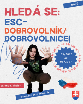 Pokud máš zájem podílet se spolu s Junge Aktion dvanáct měsíců na přípravě a realizaci mezinárodních setkání mládeže z Česka, Německa a Slovenska a naučit se spoustu nových věcí, zašli svou žádost!