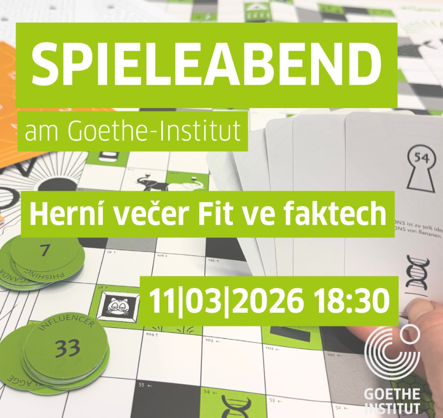 Ve středu 11. března jste srdečně zváni na další herní večer v Goethe-Institutu. Tématem večera je zpracovávání informací, dezinformací a manipulativních sdělení. Můžete si zahrát deskové i online hry z interaktivní výstavy "Fit ve faktech" a vyměnit si s ostatními své dojmy a zkušenosti.